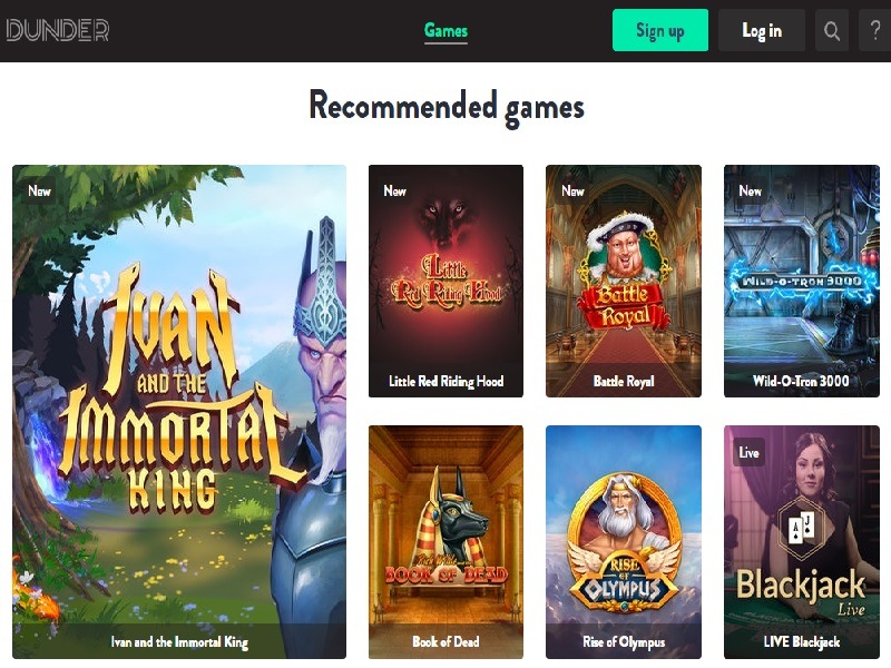 Most casinos focus rather on several basic titles, such as Mega Moolah, Arabian Nights or Mega Fortune, but in Dunder you will find a dozen or so the best titles.