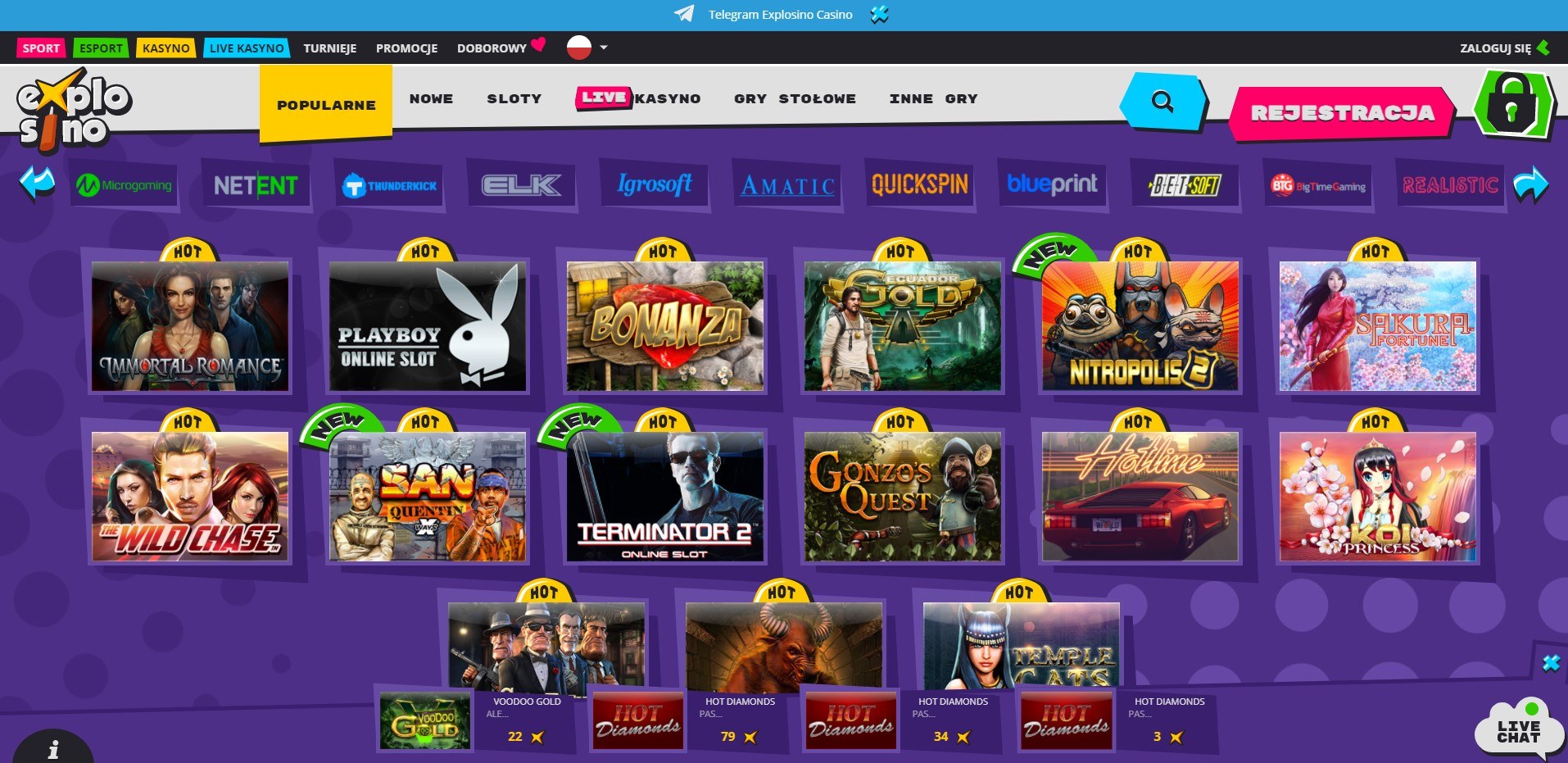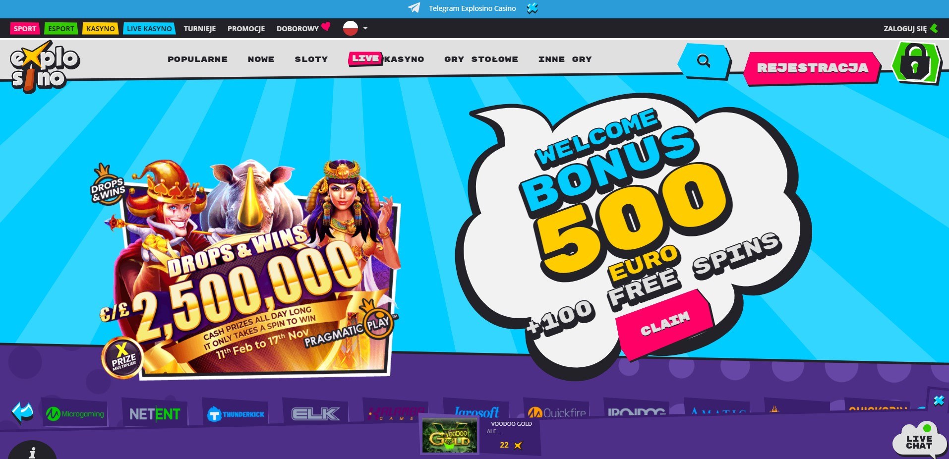 The original approach to the gambling industry and colorful graphic design is the first of the features that are conspicuous a moment after opening Online casinos sites Explosino. Purple colors and fairy -tale scenery are an intended plan to create a positive and original internet casino. Explosino casino meets all the requirements of standard casinos, and its style complements the whole, encouraging players of all ages to a unlimited game, which is to be associated with a child’s play, which is assumed by the graphic design of the site.