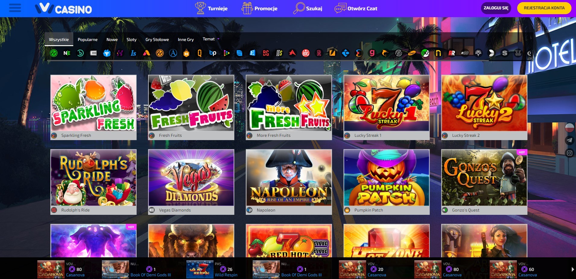 The main tab on the IVI home page are proposals for the latest drum games in the casino offer. Wanting to go to full Game vending machines offers, press the casino button from the side menu. This action moves the Internet user to the full list of all available slots divided into categories and software manufacturers.