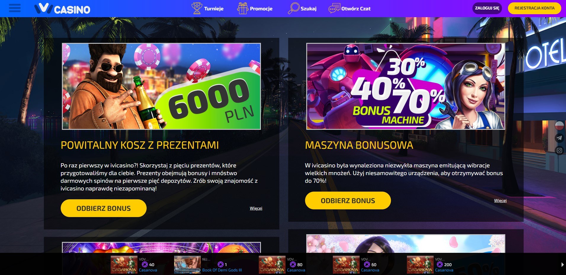 The 4IVICASINO9.COM/PL website presents the full commercial offer of the casino. Already on the main page there are the most popular titles, available promotions and proposals for current tournaments. A large selection of different types of attractions is a big advantage of this online gambling center.