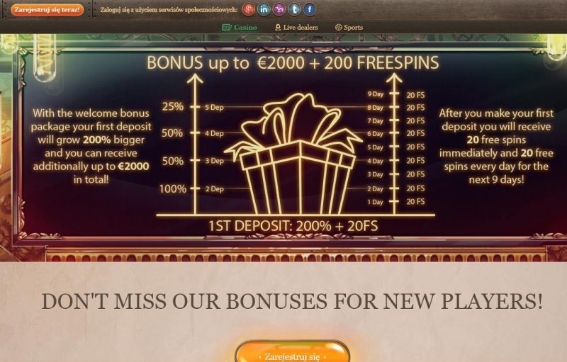 - 200% + 20 free spins