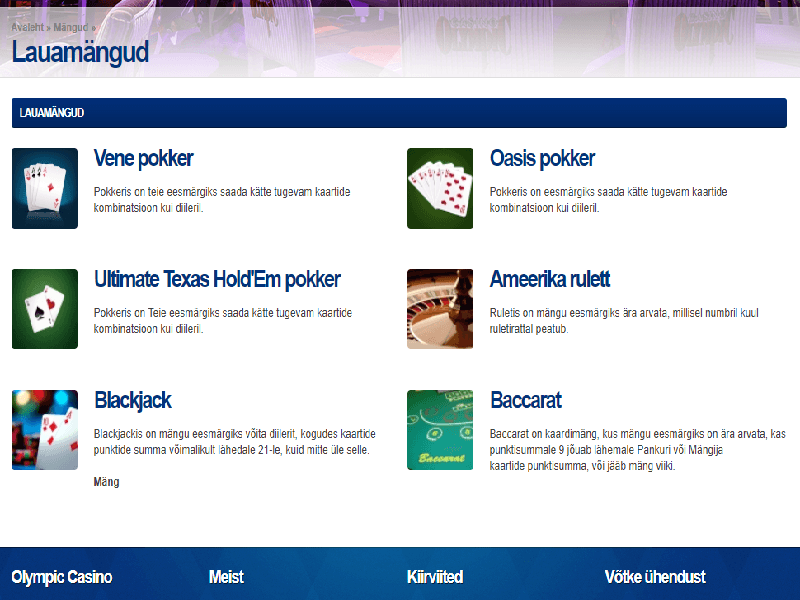 In online casinos, players are most often looking for table games, i.e. traditional games found in ground casinos. Can they be found in Olympic Casino? Of course, yes, we can even give you some sample titles: