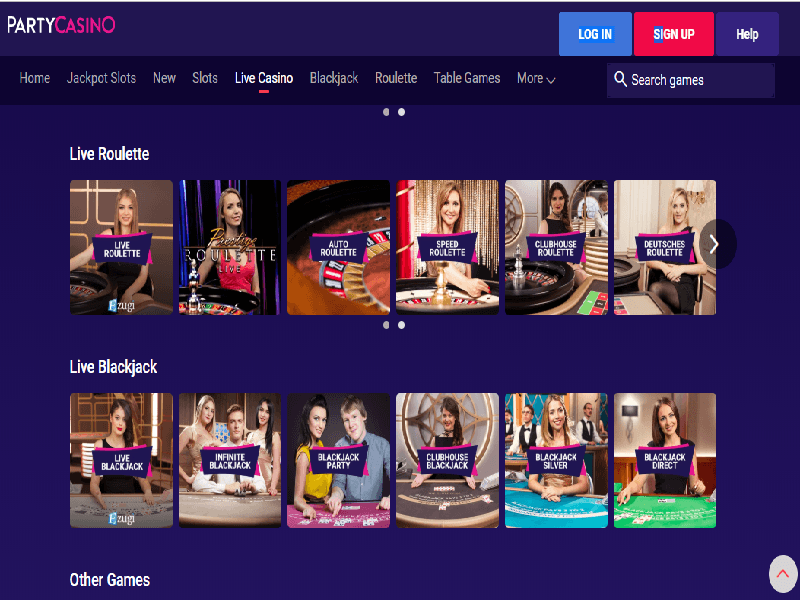 Party Casino has a separate category in which only live games are located. As in the case of table games at the casino, Blackjack and Roulette prevailing here. On the second game you can mention the most popular titles, i.e.