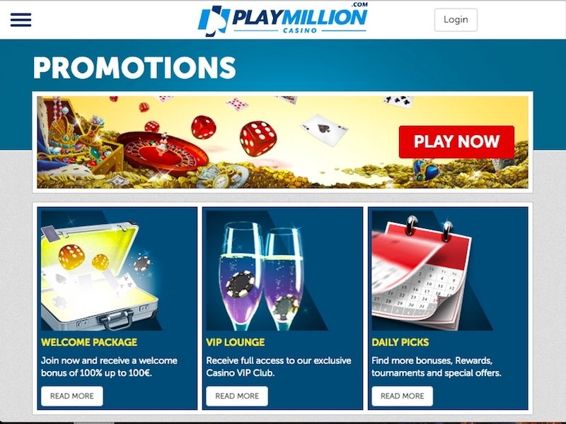 Bonus and promotional offer, i.e. Play Million Casino for free