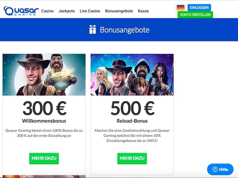 He also offers attractive Quasar Gaming bonuses after making a second deposit. We can win a 50% payment up to 500 euros!