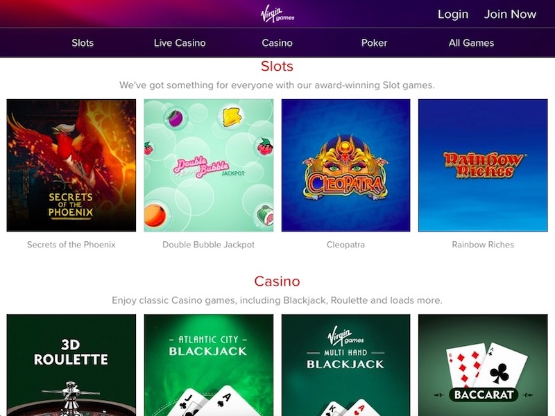 Play the casinoVirgin Casino mobile games