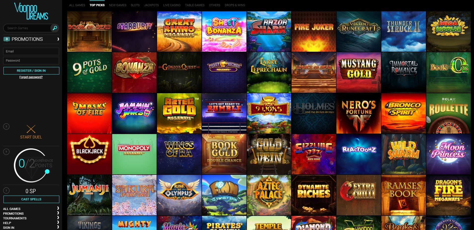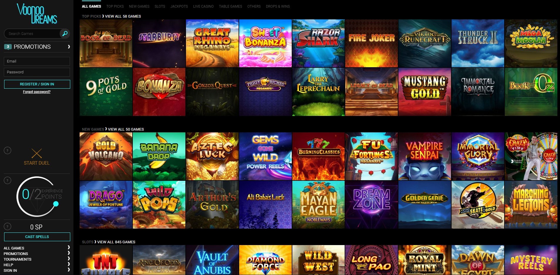 Casinos put great importance to cooperate with the best brands and Voodoo Dreams is no exception here. We will find games in it from: BetSoft, Evolution Gaming, Microgaming, Netent, Nyx Gaming, Play’n Go, Yggdrasil, Ganapati Gaming and Pragmatic Play.