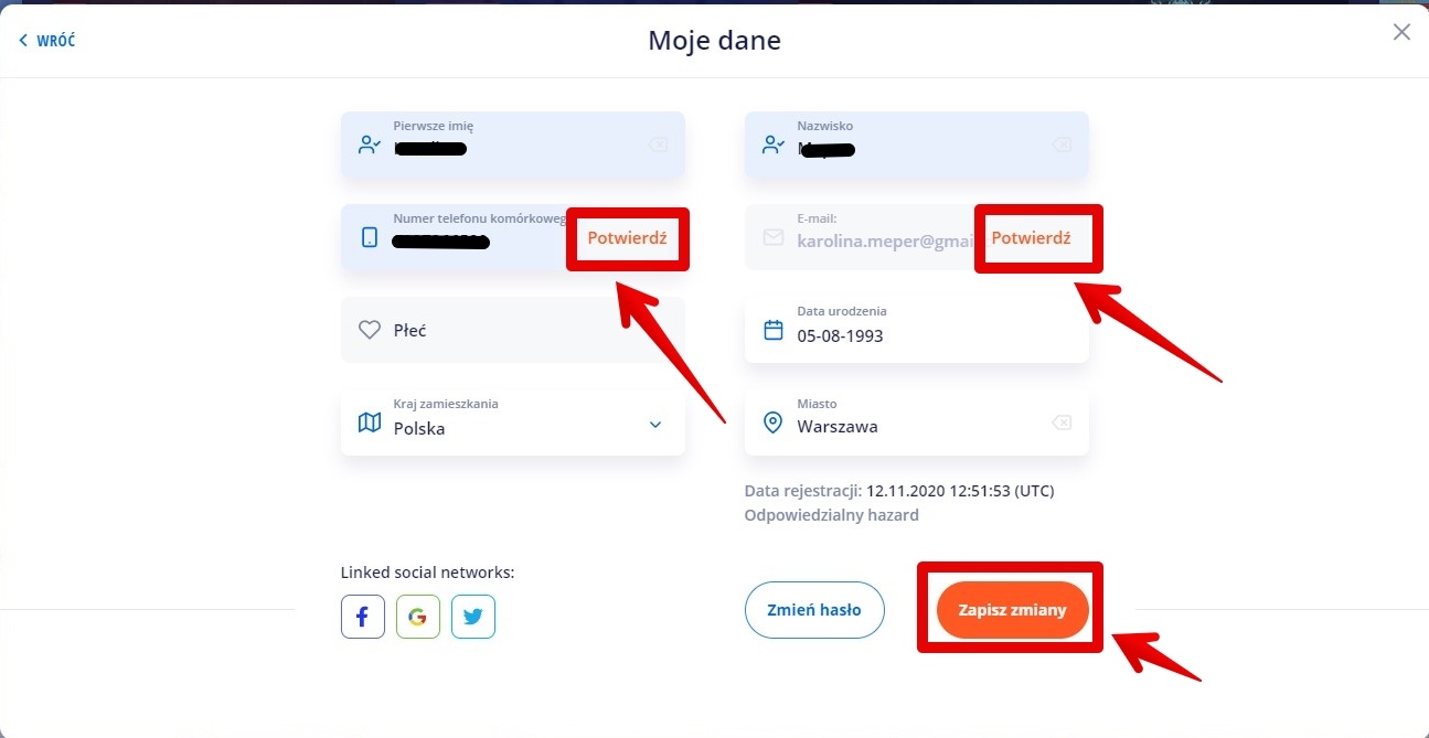 3) Then the “My data” panel will open confirm the phone number and e-mail. All required fields must be completed and saved.