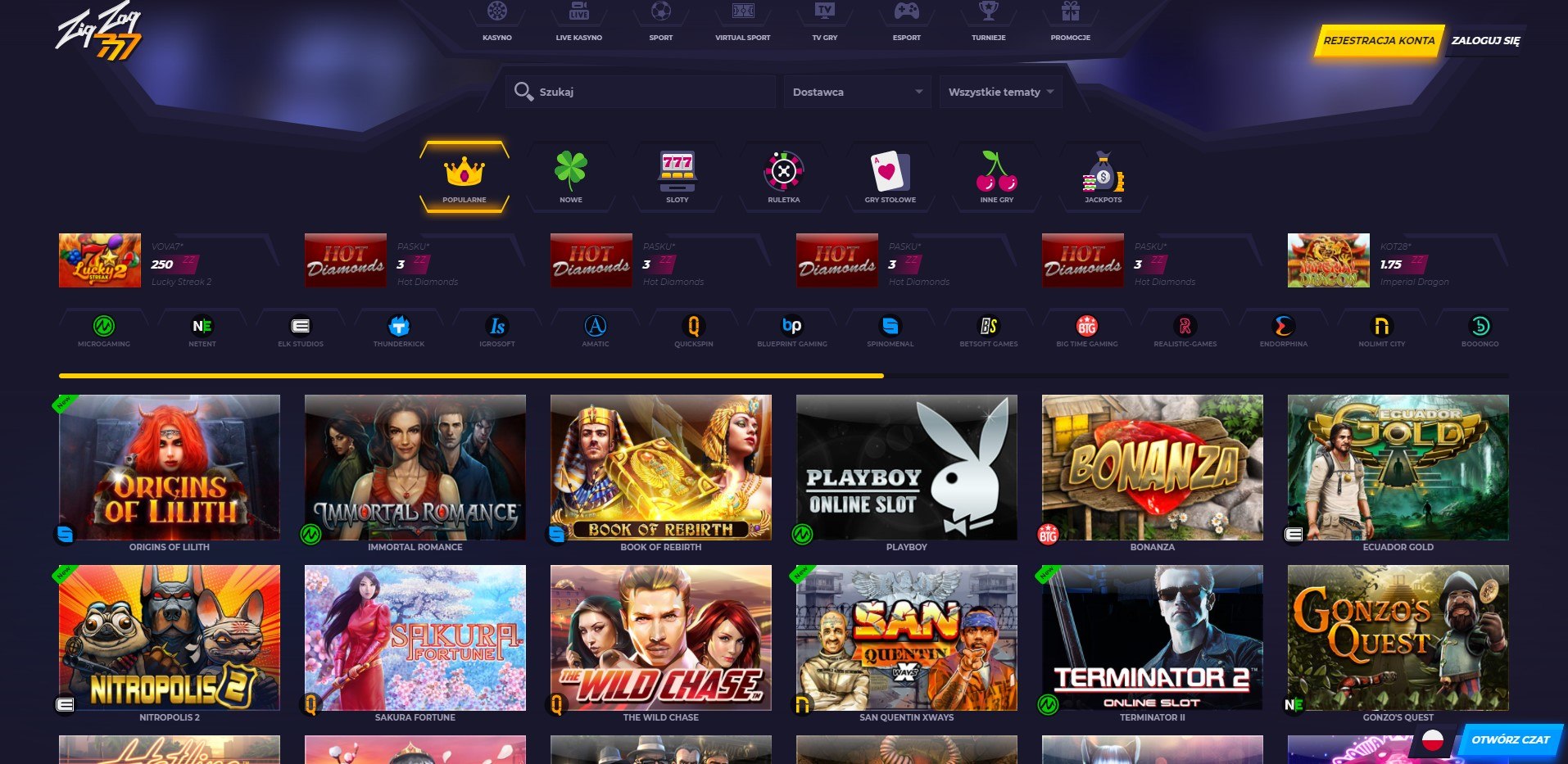 In all of the above games you can find attractive games known from other casinos and new, freshly released machines. Slots to play in zigzag777 are the widest category of all available machines for online gameplay, and it includes classic slots, fruit gambling games, thematic Hot spot games i Machines 777.